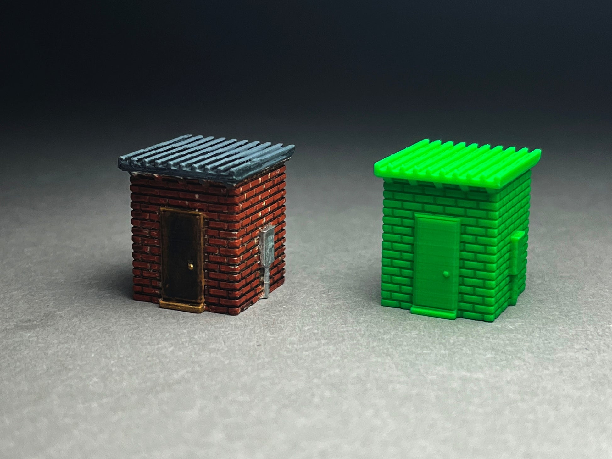 TWO (2) structures included printed in random color - PLA prints. Trackside structure - small scatter structures that will bring more realism to your layout. This structure can simulate maintenance shed, communication equipment shed, etc.